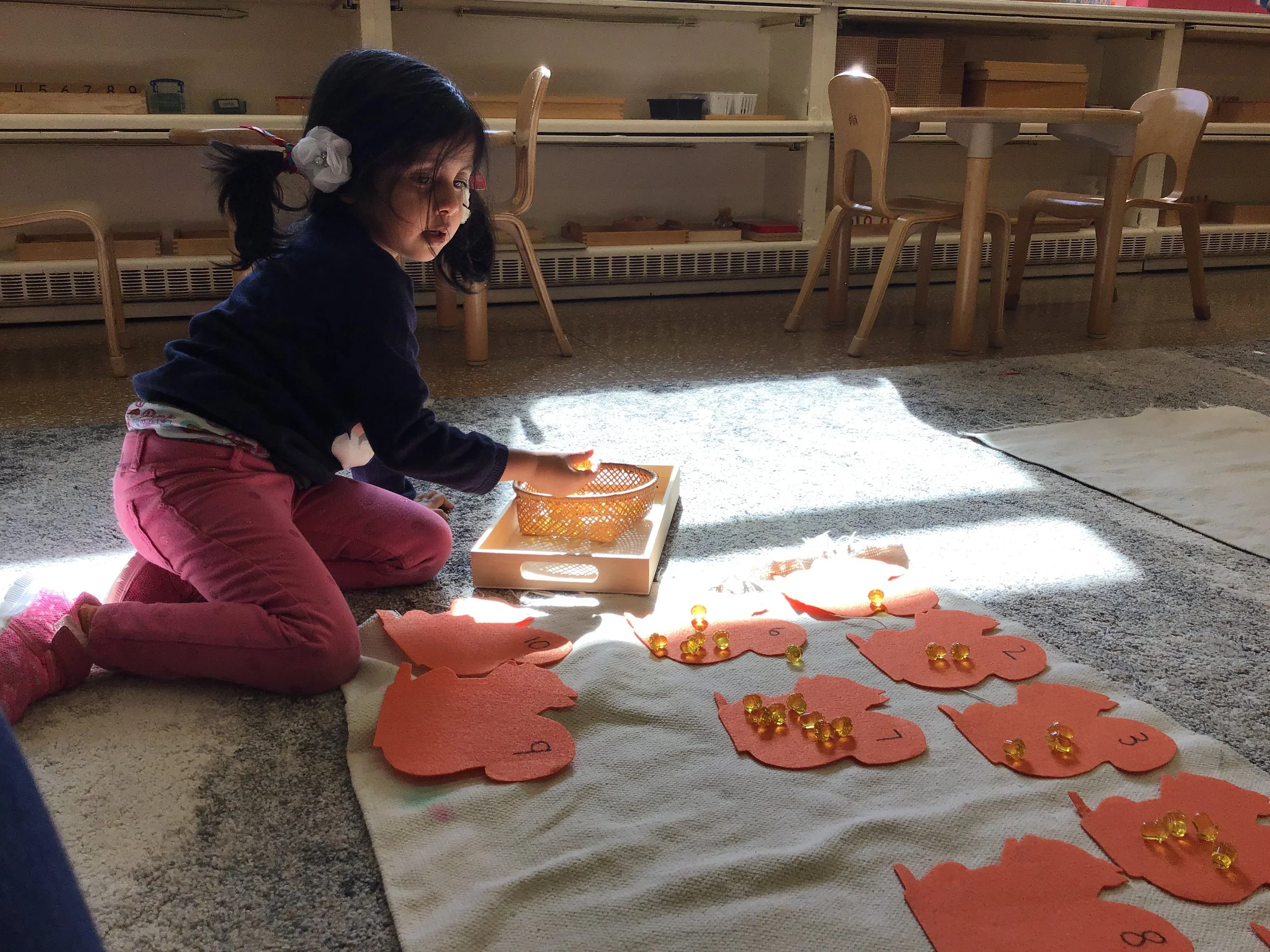 Working on teen numbers using the Teen Board and Golden Beads.